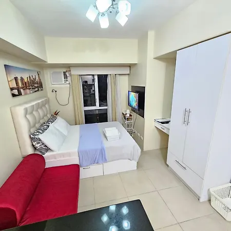 L'appartamento comprende anche un angolo cottura con un microonde, un bollitore elettrico e utensili da cucina. Gli ospiti possono provare la cucina asiatica al ristorante Phat Pho, che si trova a 600 metri. La stazione degli autobus station to Ayala Mall è a circa 200 metri. La presenza di una piscina con trampolino contribuisce a rendere il soggiorno più piacevole.